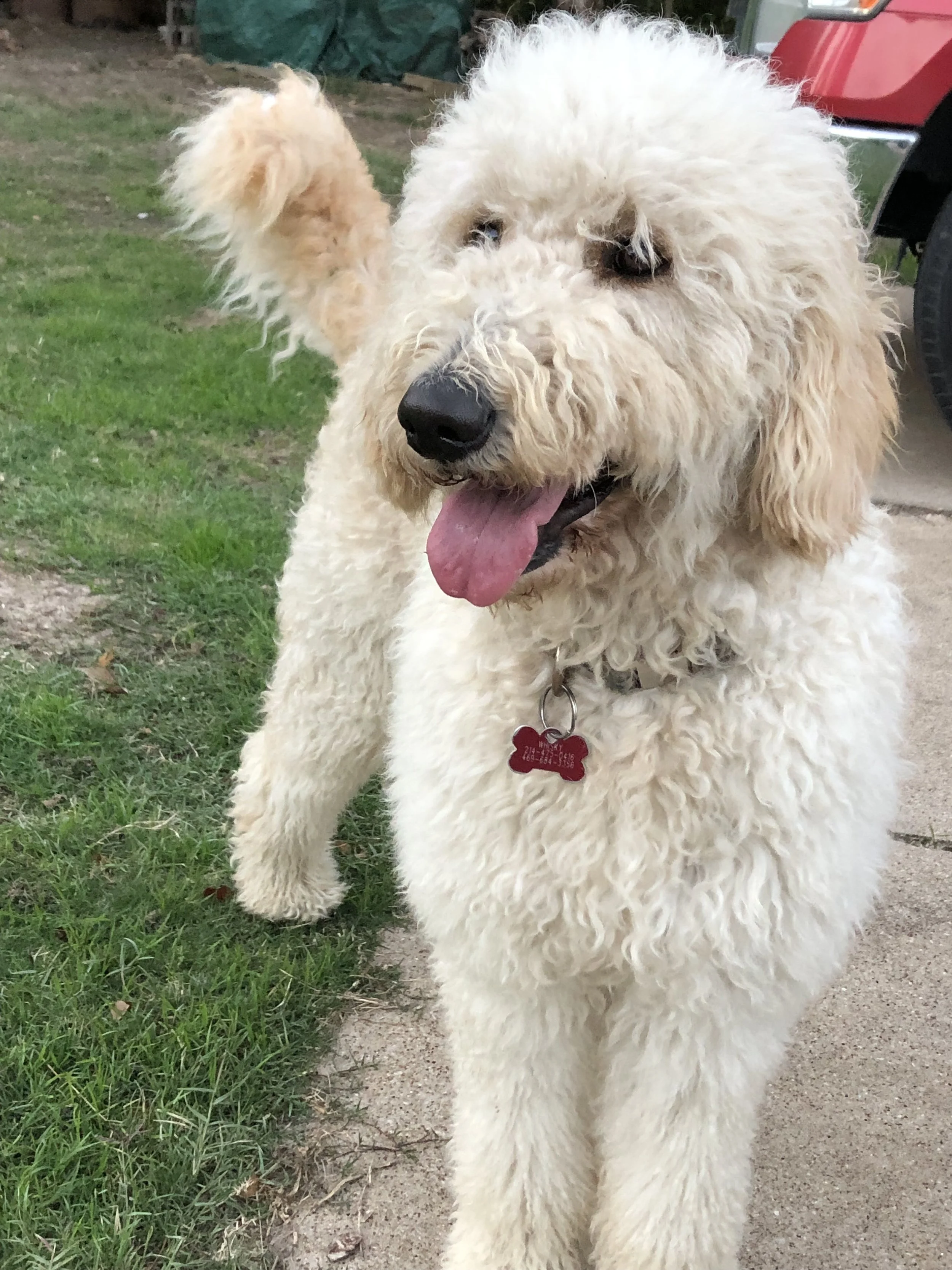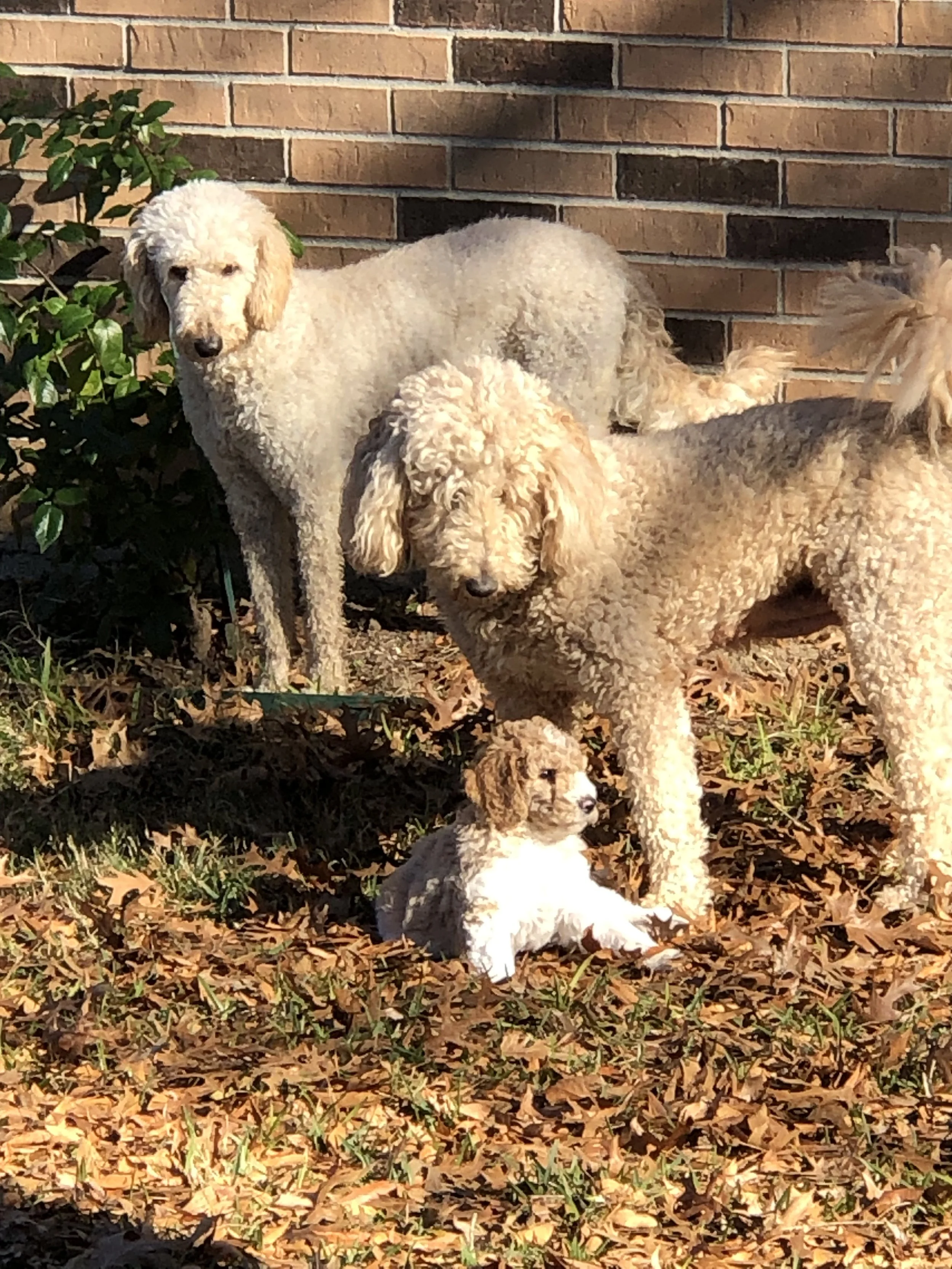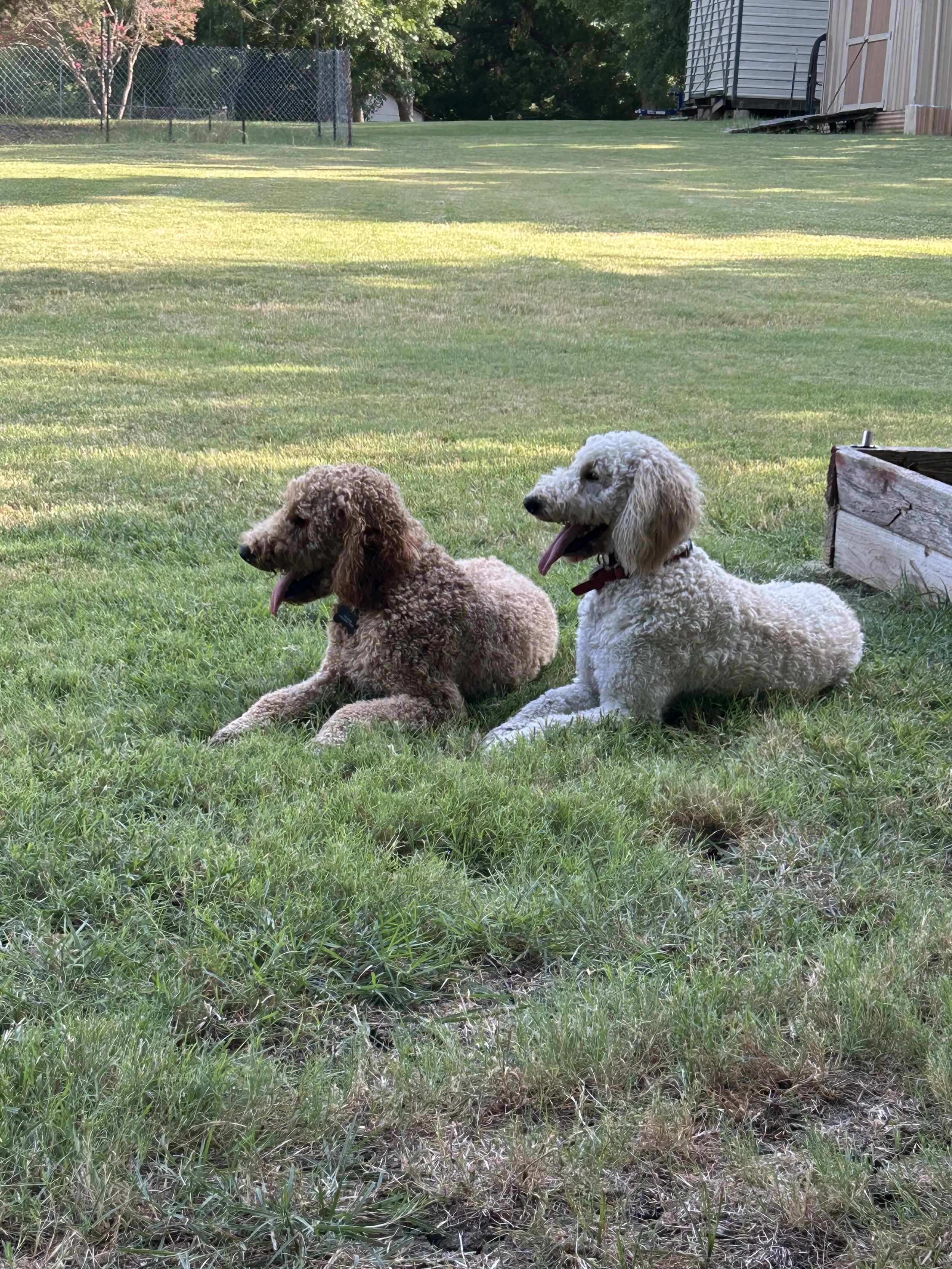 She is our tender hearted Doodle with a huge heart. A big lap dog that loves to give kisses. She loves to watch for squirrels and play with the pack.