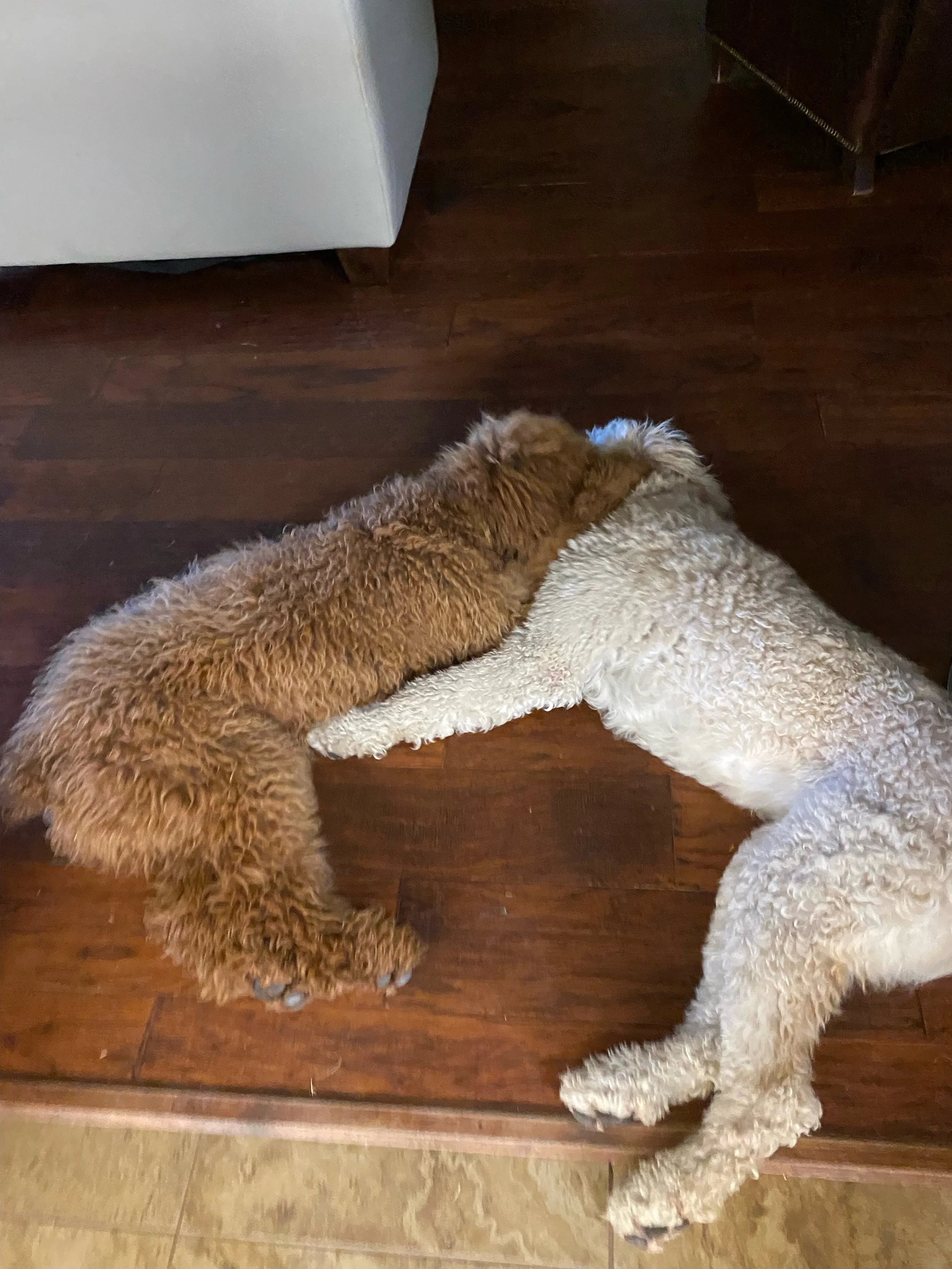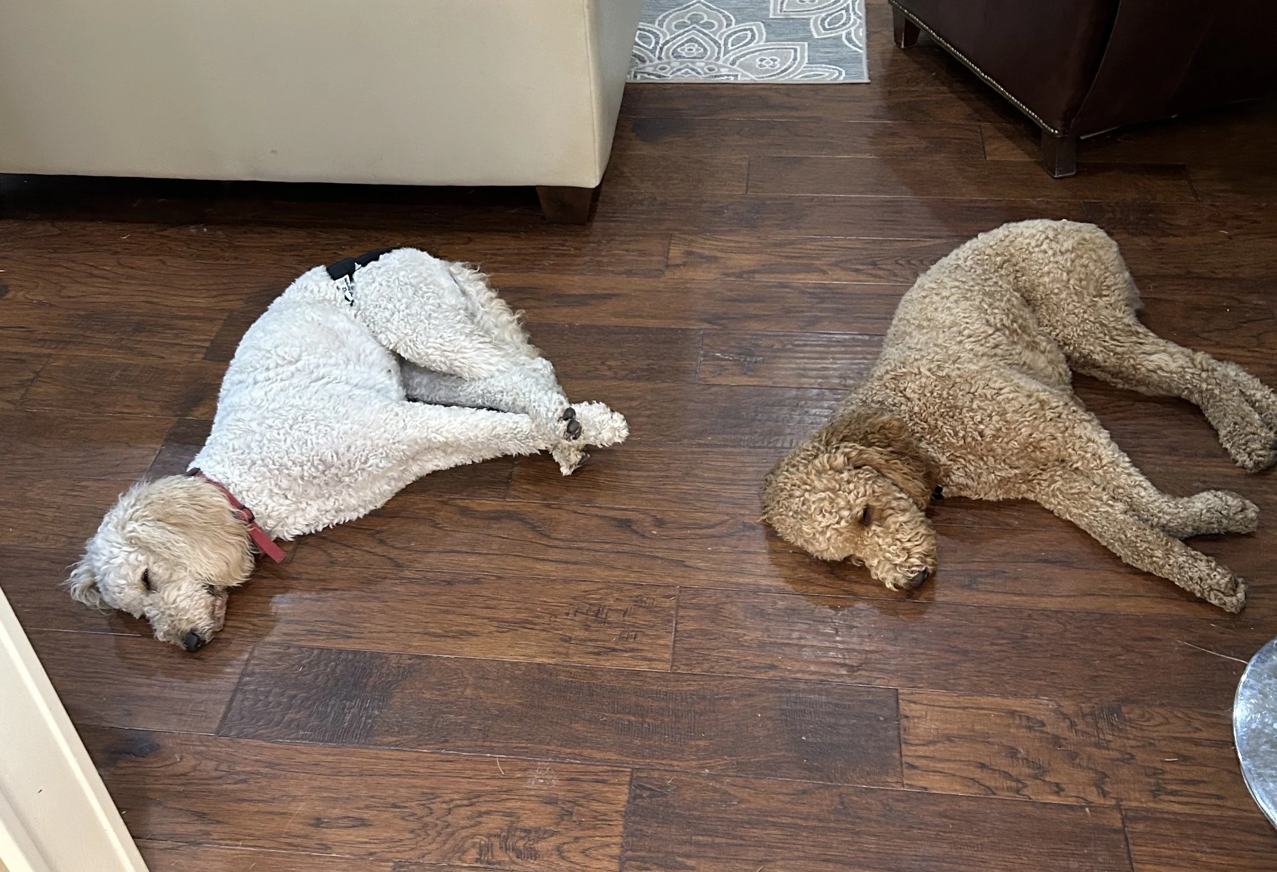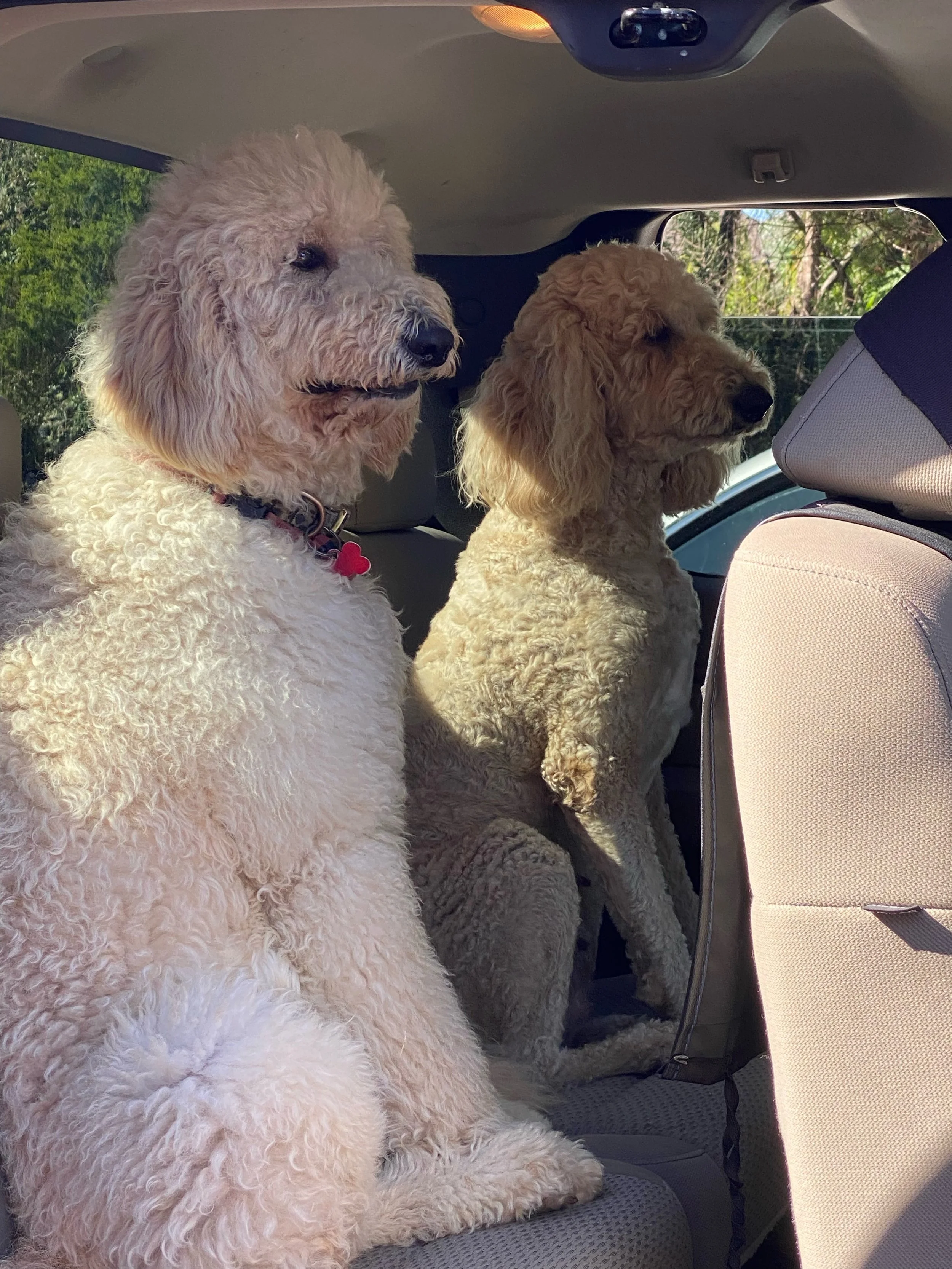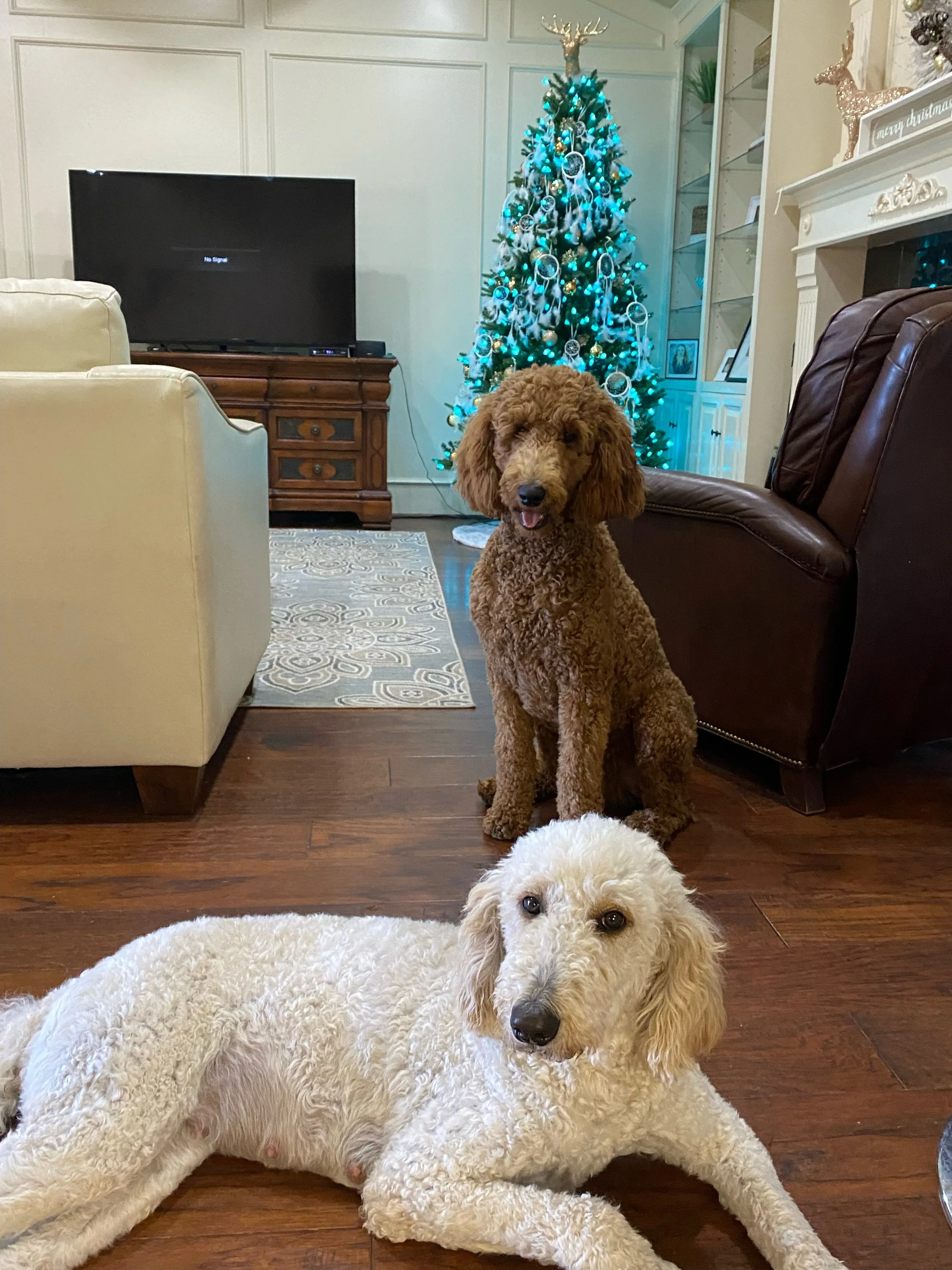 She is our tender hearted Doodle with a huge heart. A big lap dog that loves to give kisses. She loves to watch for squirrels and play with the pack.